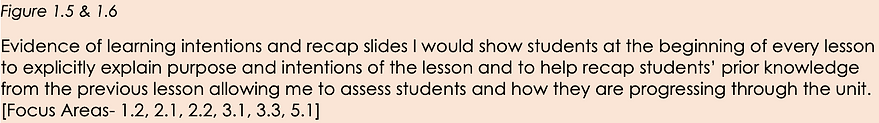 This was achieved through incorporating daily learning intention slides into the beginning of the lessons and explicitly explaining this for students, so they were aware of the expectation and outcome of the lesson.